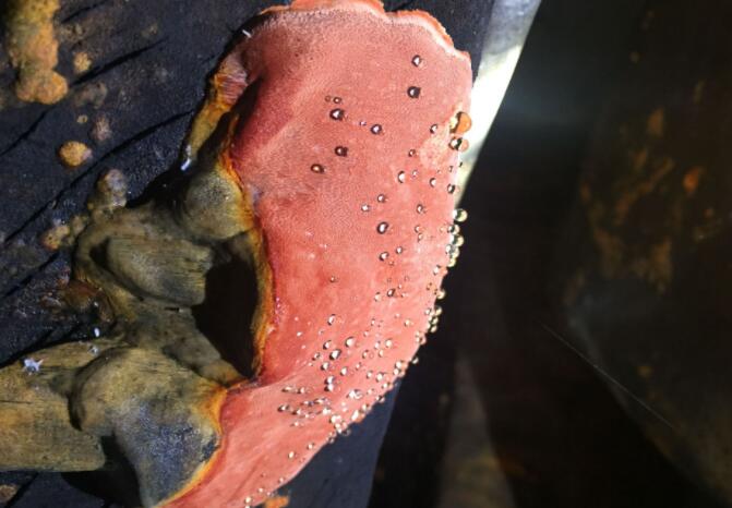 牛樟芝生长于牛樟树干腐朽的中空内部或倒伏树干的潮湿表面。野生牛樟芝长在老龄的牛樟树,子实体形态多变化,有板状、锺状、马蹄状或塔状;初生时鲜红色,渐长变为白色、淡红褐色、淡褐色或淡黄褐色。牛樟芝气芳香味辛苦、平。有祛风行气、化淤活血、温中消结、解毒消肿、镇静止痛、抗菌、抗病毒、抗肿瘤、提升机体免疫力之效;对于治疗胃肠疼痛、腹泻呕吐、食物中毒、毒蕈中毒、糖尿病、酒精肝、脂肪肝、肝硬化、肝癌等更是有独特功能。牛樟芝是有许多的生理活性成分,如多糖体、三萜类化合物、超氧歧化酶、腺苷、蛋白质(含免疫蛋白)、维生素、微量元素、核酸、凝集素、氨基酸、固醉累、纤维素、血压稳定物质等。牛樟芝的有效成分中以三萜类化合物为最特别,高达200种以上,是其他菇菌无法相比的,200多种三萜类化合物使牛樟芝具有抗癌、保肝等功效。由于樟芝在台湾被视为独特而珍贵的药用真菌,因此具有极高的研究和商业价值,也是目前台湾最昂贵的野生真菌,在港澳被称为“神芝”,台湾民间称之为“森林中的红宝石”。